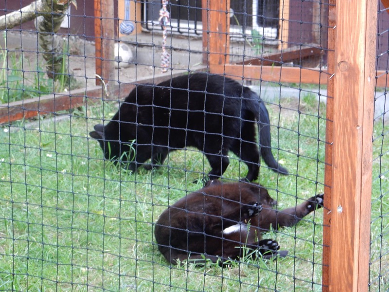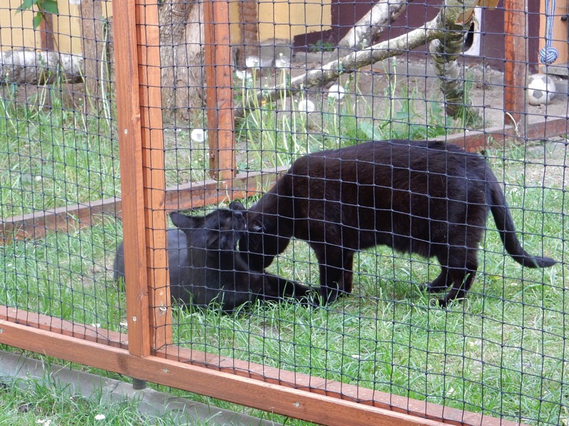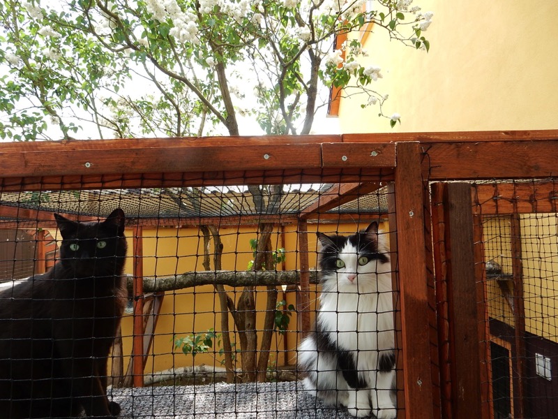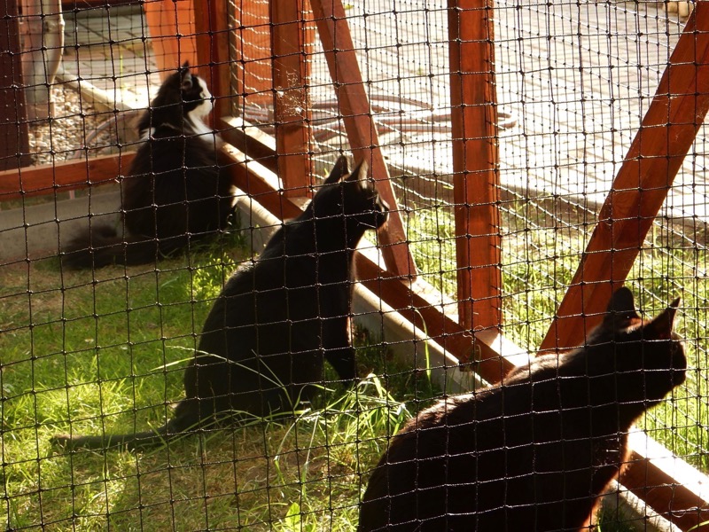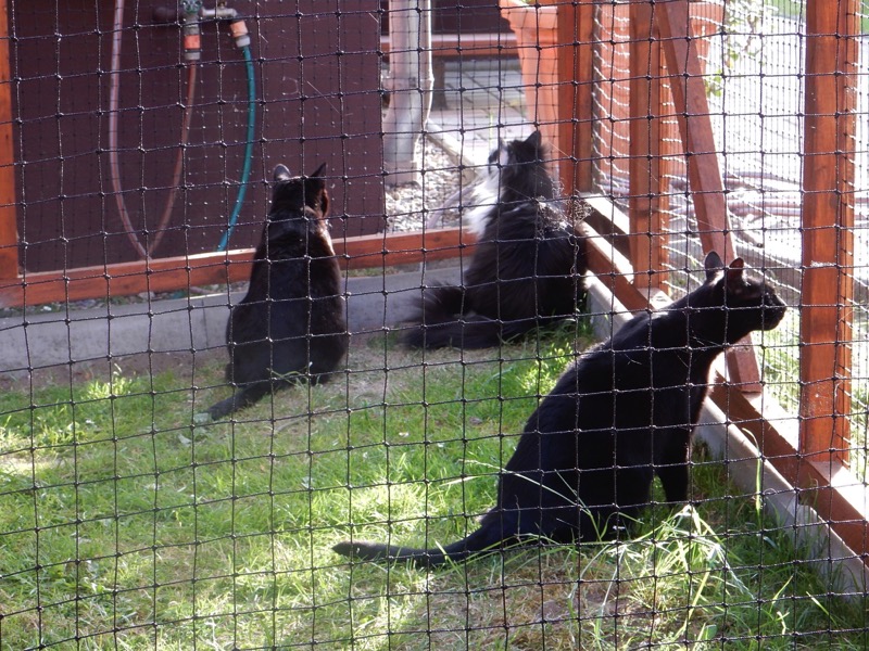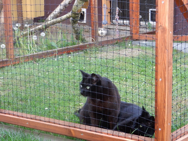 Also wir drei finden es gelungen und hatten schon Viel Spass im neuen Auslauf. Jetzt wo es wärmer wird ist das genau das richtige für uns drei Fellnasen,im Gras rum toben,auf dem Laufsteg rum liegen und schlafen ,das ist doch einfach toll!