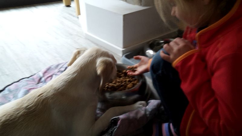 Auch liebe ich es, wenn wir zusammen im Garten toben. Jetzt, seit dem ich mich trauen kann, bin ich nämlich ein richtiger Welpe.... einer, der gerne tobt, der seine obligatorischen 5 Minuten hat (das gern mehrmals am Tage) und jedemenge Kuscheleinheiten braucht. Dafür sind meine Menschen echt cool! Die halten das spielend aus und sind auch nicht sauer, wenn ich vor Aufregung mal wieder ein paar Tröpfchen auf den Boden fallen lasse. Sie sind sehr geduldig und ich lerne dafür schnell ; -)