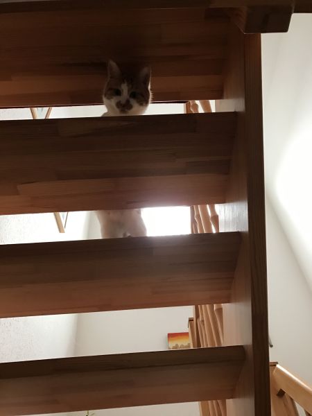 Und ja, er ist immer noch etwas schreckhaft und traut sich nur nachts in die untere Etage, aber auch das wird schon noch, denken wir.