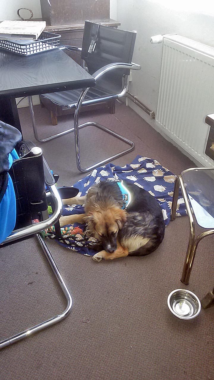 Zur Arbeit hat Frauchen mich auch schon ganz oft mitgenommen, alle Mitarbeiter sind begeistert davon, wie lieb ich dort unter dem Schreibtisch schlafe und alle die nach anderen Hunden duften kraulen mich (der ein oder andere hat sogar Leckerlis bei), gestern dürfte ich mit Frauchen und ihrem Kollegen sogar Material ausfahren. Huuuuuiiiiii sind da die Häuser, Menschen, Bäume und andere Autos vorbei geflitzt, Fahrer und Frauchen haben mir nämlich erlaubt auf dem Sitz zu sitzen und aus dem Fenster zu schauen (dass Frauchen so einen komischen Gurt für mich dabei hatte, hat mich irgendwie in meinem Freiheitsdrang beschränkt, aber sie sagt das muss so sein, da will ich ihr mal glauben).