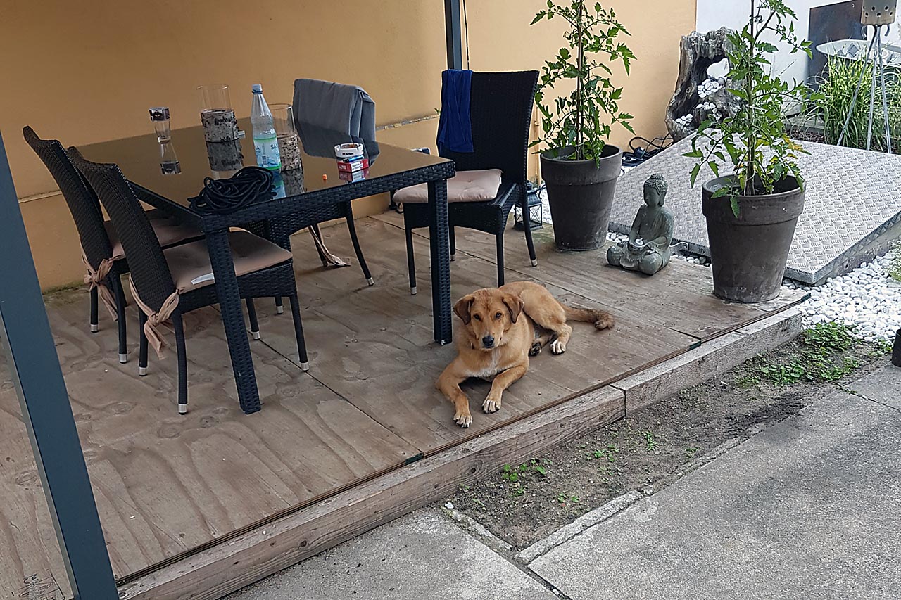 "Hallo ihr Lieben,ich bin gut in meinem zu Hause angekommen. Im Garten fühle ich mich am wohlsten. Bei den Spaziergängen gibt es sehr viel neues zu entdecken. Bin auch noch etwas ängstlich. Aber das darf ich sein es ist ja alles neu für mich.