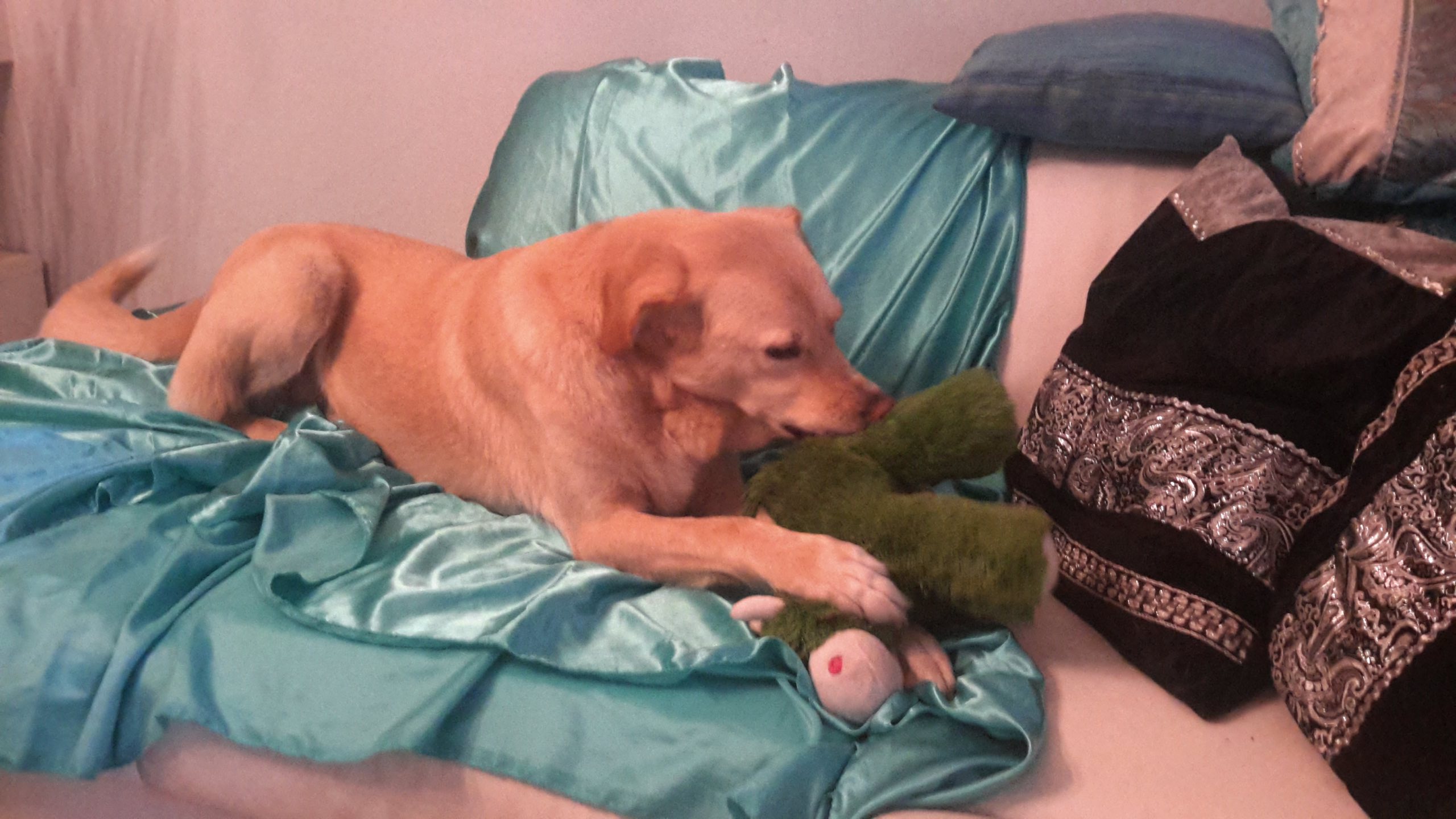 "Huhu an alle Lieben im Tierheim Verlorenwasser.Ich muß mich mal wieder melden..jetzt nach 5 Wochen bin ich total glücklich und richtig zu Hause angekommen. Mein Frauchen und mein Herrchen lieben mich ohne wenn und aber..ich bin ihr Sonnenschein..habe soooviel gelernt..mag sogar Autos..Herrchen steigt ständig aus so einem Ding aus und ein..also ist das was tolles..kein WUFF mehr..auch Radfahrer sind fast alle zu ertragen..die Kinder sind hier meine Superfreunde..schmeiß mich auf den Boden und die beknuddeln mich bis zum Abwinken..hab hier auch Hundekumpels..und im Auslaufgebiet fühl ich mich Pudelwohl..ach neee..Labbiwohl. Jage auch keine Hasen mehr..dadurch Frauchen nicht mehr durch die Gegend taumelnd, sondern entspannt mit mir spazieren gehend..sogar Männer laß ich leben..nur wenn wir unsere letzte Runde drehen dann pass ich im Dunkeln sehr auf mein Frauchen auf. Auch an den Balkon dürfen nur meine Kinderfreunde und Herrchen..sonst gibts anständige Meckerverscheuchungswuffs..meine Stimme ist seeeehr überzeugend..wenn es dunkel ist läßt Frauchen trotzdem Balkontür weit offen..hier ist es sehr ruhig, aber ich höre alles. Bin der Kimbowachhund. Frauchen und Herrchen lassen ganz lieb grüßen und sind glücklich das ich bei ihnen bin..die geben mich für nichts in der Welt wieder her!!! Und abends wird mit meinem Spielzeug gekämpft..ich gewinne immer..habe begriffen das die armen Zweibeiner echt nicht mithalten können..na wenn ich dann gewonnen habe, trage ich es fast immer wieder zurück..die freuen sich dann wie kleine Kinder..bissel komisch sind die, aber ich hab die beiden überalles lieb. Danach wird noch auf der Couch ausgiebig geschmusst..bin nämlich ein Knuddelmonster und ich liebe es wenn der Fernseher läuft. Richtig gemütlich machen wir es uns dann..wir futtern abends dann gemeinsam..neee..die essen nicht mein Essen..aber manchmal darf ich mal bei Frauchen und Herrchen kosten..nur ganz wenig, aber nur wenn es nicht ungesund ist..habe auch bissel abgespeckt..sehe jetzt noch toller aus, falls das geht..bin ja von Natur ein wunderschöner Kimbo. So das wars erstmal..schicke noch paar Fotos und ein Video..hoffe das kann man anhängen und ist nicht zu groß. Bis zum nächsten Mal..ich danke euch allen, das ihr mich zu dem gemacht habt, der ich heute bin.