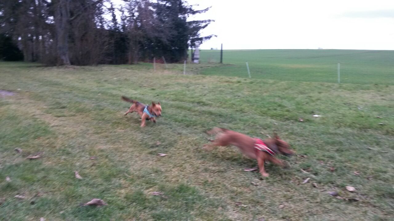 Wir waren über Silvester in Thüringen,  wo es richtig schön ruhig war, abgesehen von ein paar wenigen Böllern um Mitternacht. Die Hunde waren ziemlich entspannt. War richtig schön. Tagsüber konnten wir beide mal von der Leine abmachen und toben lassen. War supi. Patrick hört gut, kommt fast immer, wenn man ihn ruft. Er ist sooooooo lieb.