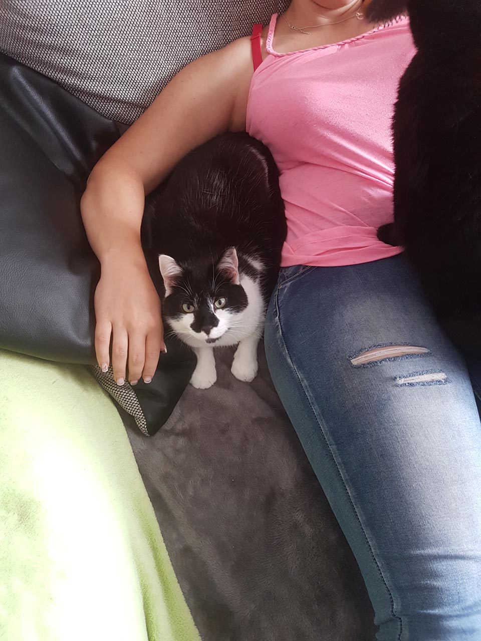 8 Monate ist es jetzt her, dass wir diesen scheuen Kater an uns vorbeiflitzen sahen und wir uns für ihn entschieden haben. Mittlerweile hat er sich zu meinem Schatten entwickelt, folgt mir auf Schritt und tritt, kommt miauend in meine Arme gerannt, wenn ich heim komme und schläft bei mir am Fußende! Er liebt seine Streicheleinheiten und kuschelt viel mit seiner Freundin! Eigentlich wollten wir uns eine weitere junge Katze bei euch holen, nun erwarten wir aber erstmal ein Menschenbaby. Da das Stress und ein erhöhten Lautstärkepegel bedeutet, warten wir bis nächstes Jahr! Schließlich soll es wieder ein scheues Tierchen sein, was es schwerer hat ein zu Hause zu finden!