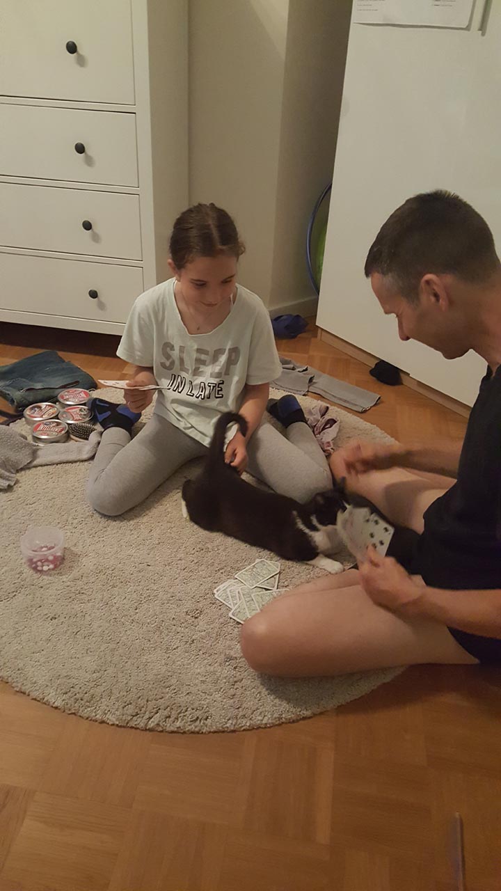 Heute früh haben wir sie im Katzenbaum entdeckt. Sie frisst gut und schmust schon mit uns.