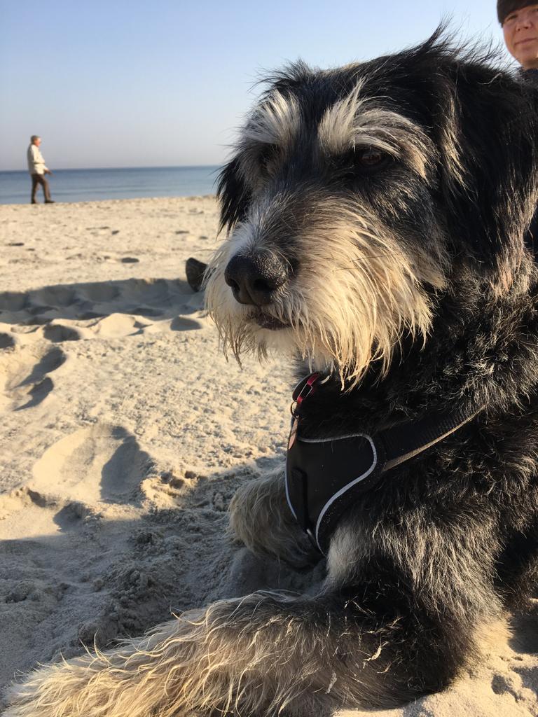 Wir beide sind ein gutes Team und viel unterwegs ... an der Ostsee schnuppern ... in Potsdam mit meinem Gassi Kumpel ... und den Wald rund um unser schönes Zuhause machen wir auch regelmäßig unsicher . Man sorgt jetzt sehr gut für mich .. und ich möchte mich auch bei meinen ehemaligen Pflegern bedanken und wünsche ein tolles 2019 ."
