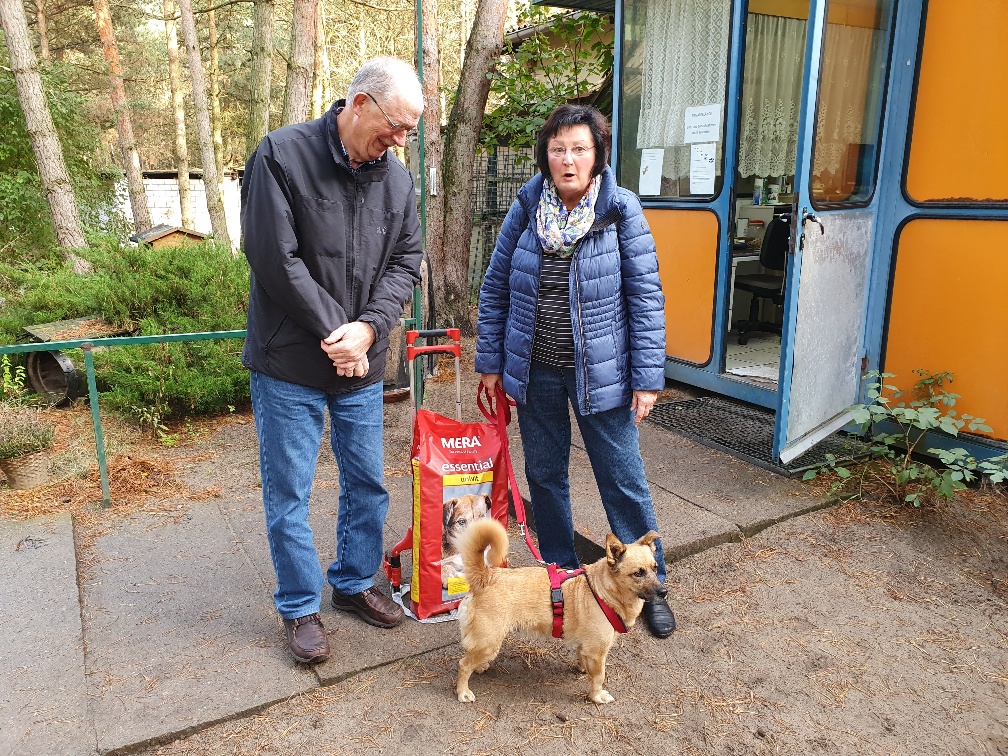 Mit stolz erhobenem Ringelschwanz lieferte er eine tolle Spende von Herrchen und Frauchen ab.