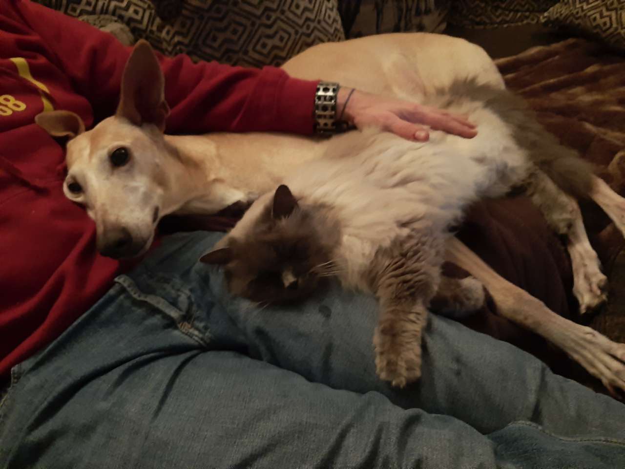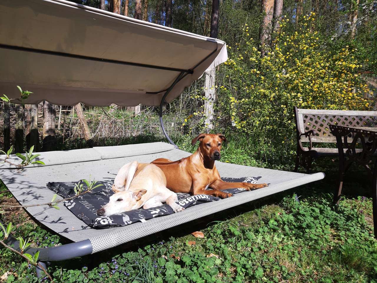 Eigentlich wollten wir noch keinen Zweithund. Zu tief war die Trauer auch bei uns aber dieses Häuflein Elend zu sehen war noch schlimmer. Wir fanden ein Ridgebackmädchen und nahmen Amara mit zum Kennenlernen. Ein Schnuppern und das Leuchten in den Augen unserer Langnase war überdeutlich. Es folgten mehrere Besuche bis unser Neuzugang einzog und seitdem ist die Welt für Amara wieder in Ordnung. Wir wissen ja nicht wie alt sie ist, schätzungsweise nun vielleicht 11 oder 12, aber sie tobt wie ein Jungspund. Mittlerweile ist von dem beigefarbenen Hund, den wir im Oktober 2014 bei Euch abholten nicht viel übrig. Die Farbe ist hell geworden und im Gesicht haben wir nun eine Silberschnute. Aber auch nur daran kann man ihr Alter ahnen. Sie hatte vor 2 Jahren einen Tumor am Gesäuge, den wir aber rechtzeitig entdeckten und entfernen lassen konnten. Sie macht uns nach wie vor viel Freude und wir genießen es zu sehen, wieviel Spaß sie am Leben hat. Vor Kurzem sprach jemand meinen Mann an, ob wir den Hund aus Verlorenwasser haben.... da hat sie wohl einer erkannt 😁, nach all der Zeit. Sie ist nach wie vor ein Hauptgewinn. Vielen Dank, dass sie zu uns kommen durfte. Bleibt gesund!