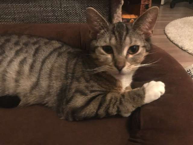 Bonny ihr größtes Hobby ist kuscheln und sie ist immer mit dabei, egal in welchem Zimmer man sich aufhält. Man könnte ja was verpassen. :) Bonny hat zwar einen chronischen Schnupfen, aber mit regelmäßigen Salz-Wasserdampfbädern und Näschen säubern haben wir alles gut im Griff und sie ist fit wie ein Turnschuh mit voller Lebensfreude.