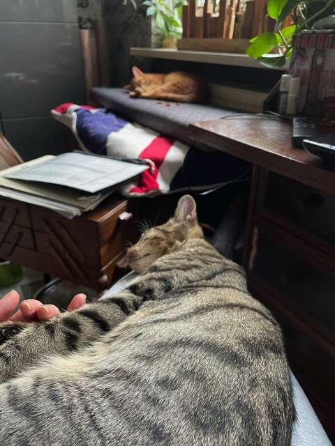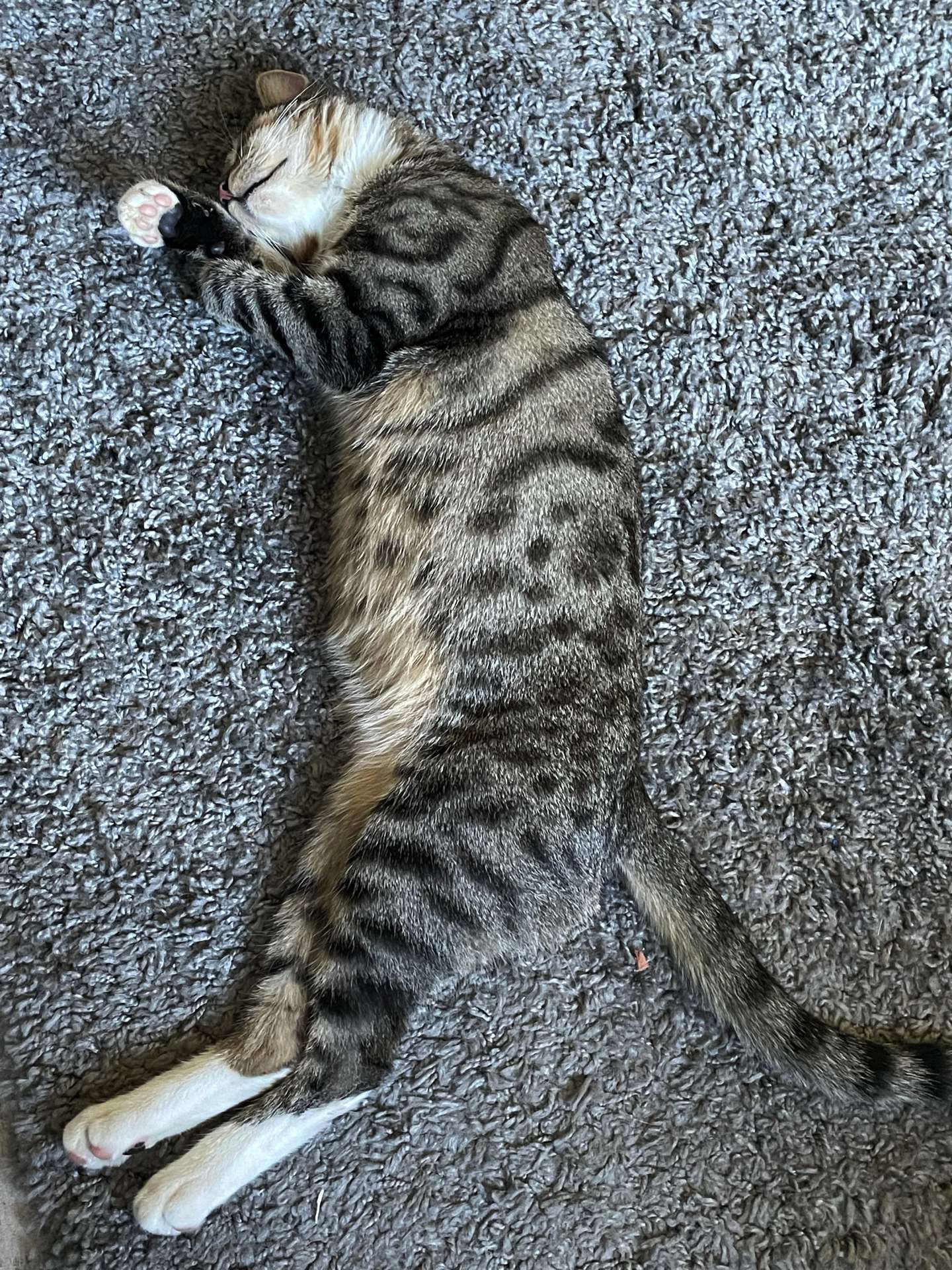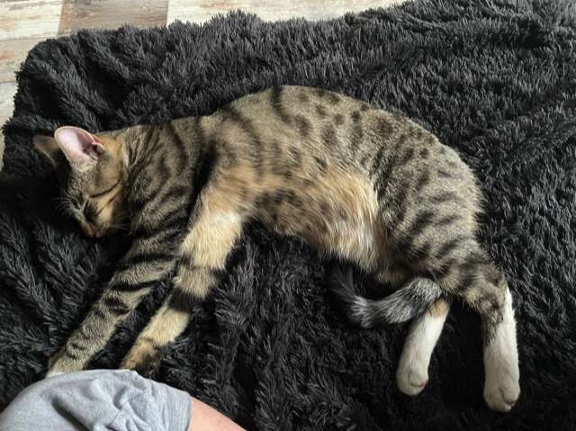 Danke für diesen total verschmusten, agilen Racker! Er hat ca. 3 Stunden gebraucht um seine Scheu gegenüber seiner neuen Heimat abzulegen. Er ist permanent auf Erkundungstour, spielt wie ein Wilder und liegt anschließend kuschelnd bei einem von uns.