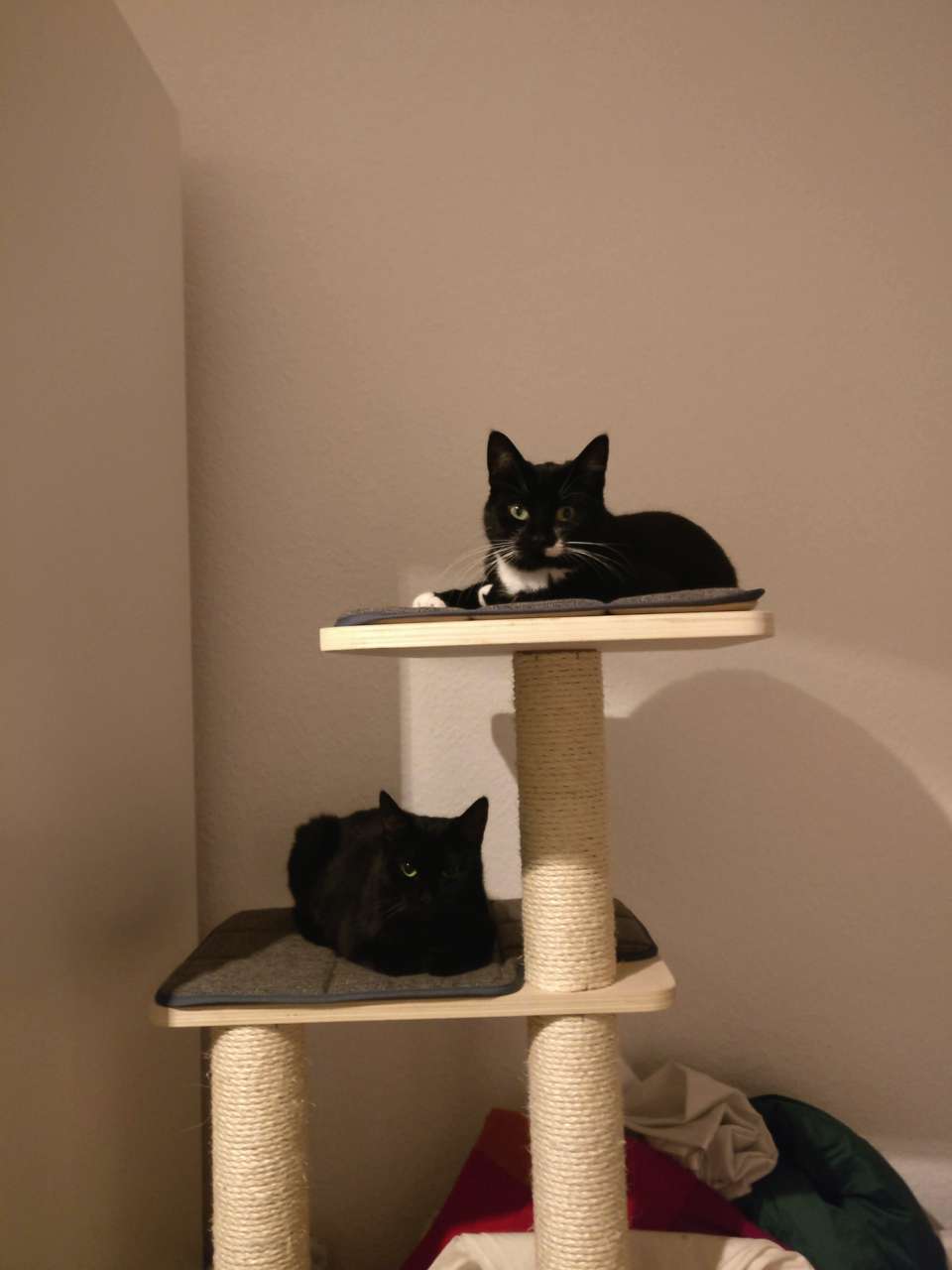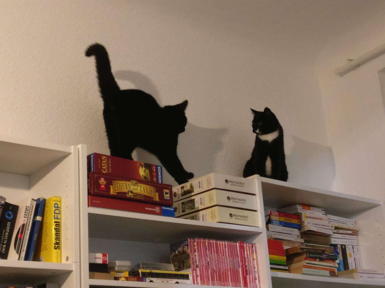 Jiji und Spot (ehemals Lena und Kara) wohnen jetzt mit uns in Berlin. Sie haben sich in der neuen Wohnung gut angepasst. Dort haben sie jetzt noch mehr Platz, Spielmöglichkeiten und können mit uns an der Leine die Innenhöfe besuchen.