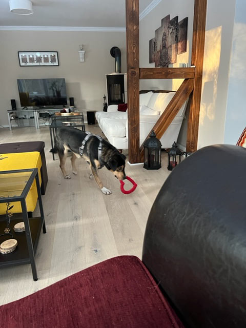 Die Erholung tat ihr gut und wir konnten alle davon profitieren. Danach kamen wir uns Stück für Stück immer näher: sie brachte uns von alleine ihr Spielzeug, wir dürfen sie kraulen, sie ruhte vor unseren Füßen an der Couch oder in ihrem Bett und sogar „richtiges“ kuscheln war schon möglich.