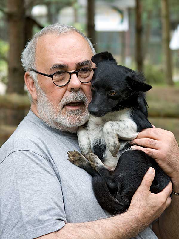 Bei einem Besuch entdeckte unser Schirmherr Udo Walz den kleinen süßen Hund Gonzo. Beide konnten sich kaum trennen.