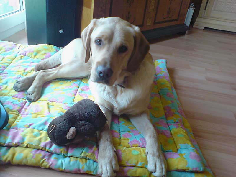 Ajax - ein 9 Monate alter Labrador - kam zunächst als Pensionsgast zu uns, weil sein Herrchen nach einem schweren Herzinfarkt im Krankenhaus lag.