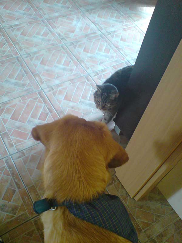 Ein wenig Bedenken hatten wir, ob Ajax die Katze des Hauses am Leben lässt. Doch diese erwies sich als sehr clever und erklärte dem Neuling per Pfotenschlag, wer hier Herr im Hause ist. Und da auch Ajax sehr klug ist, hat er alles verstanden und sich mit bestem Benehmen eingeführt.