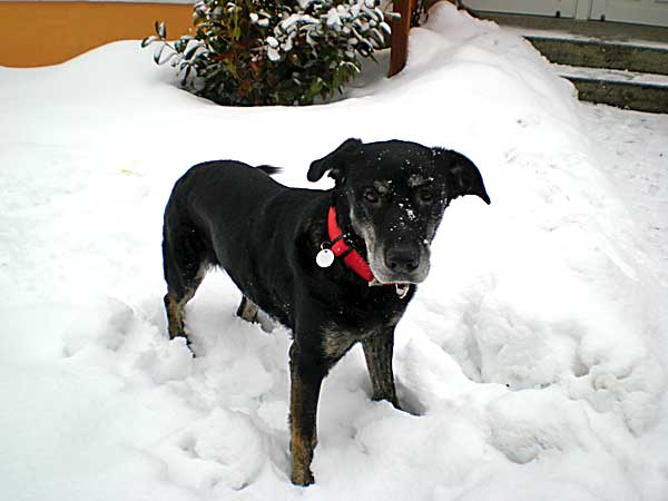 Der schwarze Hund ist meine Freundin und steht nicht zur Vermittlung, dass das klar ist.