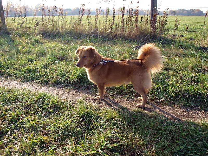 Jeden Tag laufen wir zum Kanal und gehen stundenlang an den Feldern und Waldstücken spazieren. Dort treffe ich viele meiner neuen Hundefreunde zum Toben (Wettrennen finde ich irre, habe den Beinamen Speedy), Löcher buddeln, Wälzen, Schnuppern, Krähen jagen und was Hund noch so alles macht.