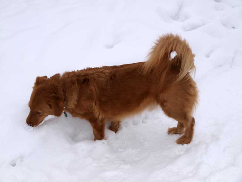 Toll war der Schnee im Winter, obwohl ich wasserscheu bin und nicht wie die anderen Hundekumpels im Sommer baden gehe, hatte ich ihn zum Fressen gern.