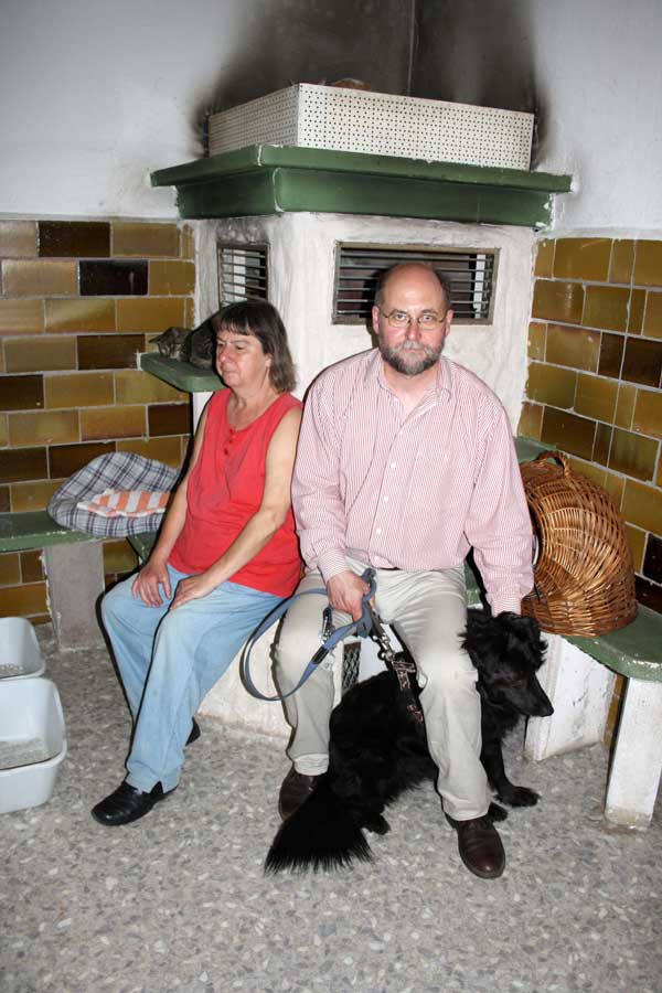 Zum Aussuchen eines passenden Grautigers waren nicht nur Naomis neues Frauchen und Herrchen gekommen, sondern auch ein großes schwarzes Fellbündel, das sich aber im Katzenraum doch wohl recht unterlegen fühlte und lieber bei Herrchen Schutz suchte, um möglichen Attacken von "Kampfkatzen" zu entgehen. Wer genau hinschaut erkennt ihn vielleicht wieder: es ist unser Rocky, der schon vor ein paar Wochen adoptiert wurde.