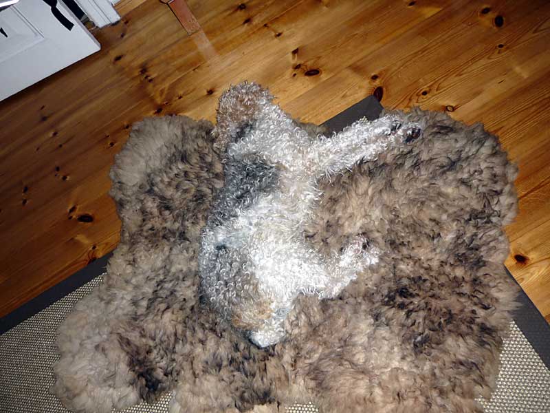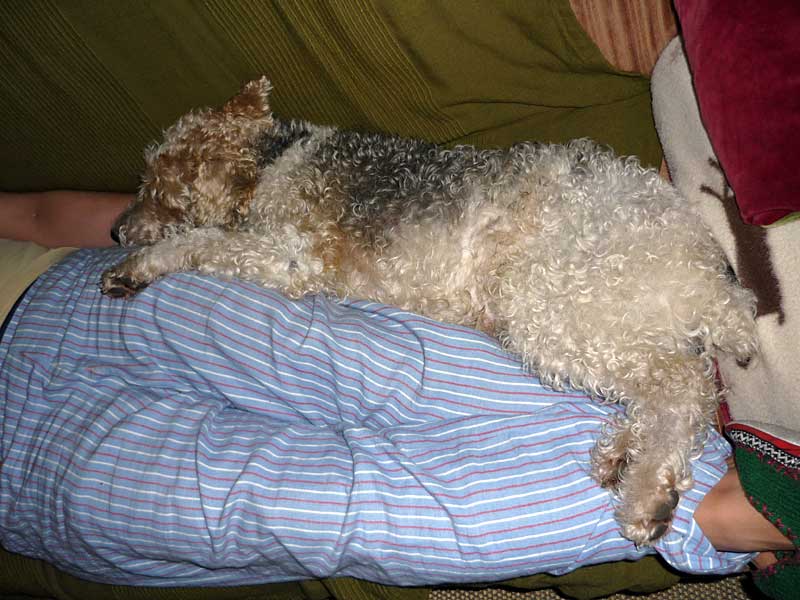 ich schicke Euch mal ein paar Bilder von mir in meinem neuen Zuhause. Es ist super, mit meinem Menschenpapa auf dem Sofa; auf dem Fell, das extra für mich besorgt wurde und so richtig schön in der Sonne. So hab ich mir das vorgestellt. Beim Friseur war ich auch schon, jetzt hab ich kurzes Fell und ich find's toll mit meiner neuen Frühlingsfrisur - zum Glück kein "richtiger Foxi-schnitt".