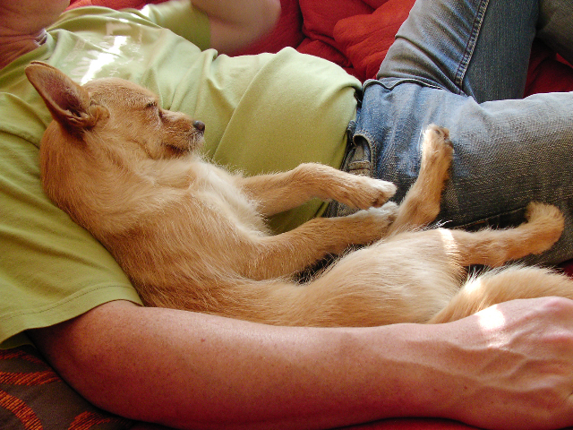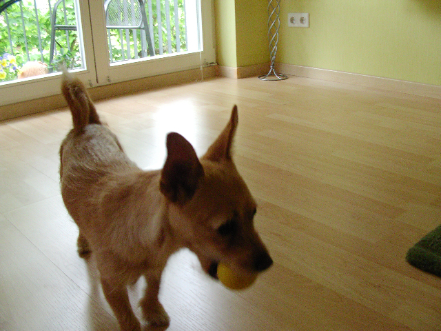 Wir sind schon ganz stolz, dass sie Sitz und Platz gelernt hat und die Bedeutung von Pfui und Nein kennt. Der Tierarzt hat ihr jetzt eine gute Gesundheit bescheinigt, der Zahnstein ist dank Trockenfutter (ja auch wenn ihr erstaunt seid - sie frisst es) fast Geschichte und die leichte Bindehautentzündung durch Eigenhaare bekommen wir durch "Scherenschnitt" auch hin. Den Durchfall, den sie bei euch hatte, haben wir dank Spezialfutter auch besiegt.