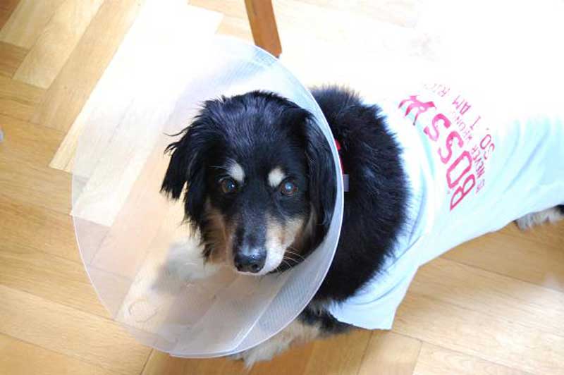 Außerdem wurde mir an dem Tag meine Männlichkeit genommen – das fand ich nicht nett, sag ich euch. Zumal ich danach dann auch noch so ein doofes Ding um den Hals tragen musste und mir wurde etwas für Menschenbabys angezogen, damit ich mir die Naht nicht aufscheuern kann. Man, war das blöd! Aber zum Glück ist jetzt alles verheilt und ich muss nur noch mein Fell anhaben.