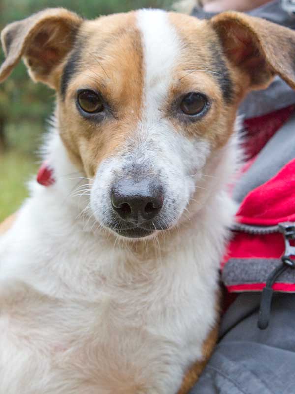 Die Jack-Russel-Mischlingshündin schließt ihren Menschen so ins Herz, dass sie ihn gar nicht gehen lassen möchte und am liebsten immerzu mit ihm zusammen ist und schmusen möchte.