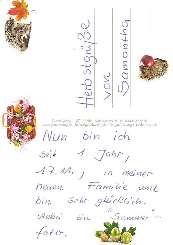 Samantha hat es auch sehr gut getroffen in ihrer neuen Heimat Nuthetal. Sie sandte Herbstgrüße.