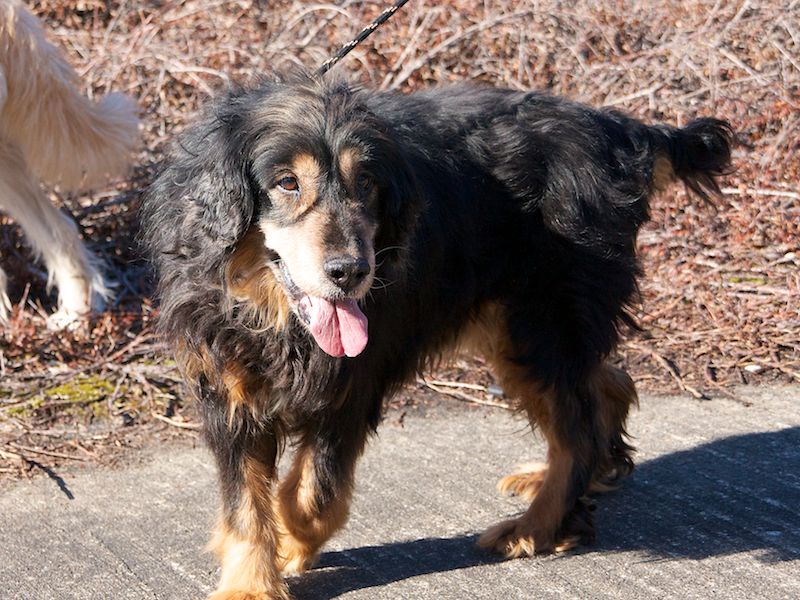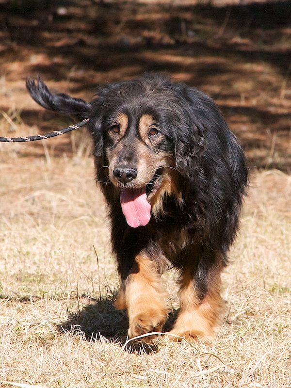 Cocky gehörte zu unseren absoluten Sorgenkindern: ein alter trauriger Hund in sehr schlechtem Zustand. Den Kreuzbandriss ließen wir operieren, das verklebte Fell, das ihn sogar am Laufen hinderte, wurde geschoren - aber für das Heilen der Seele gibt es keine Operation - das kann nur durch liebevolle Pflege erfolgen.