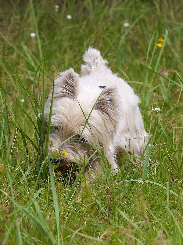 Jacky ist eine ganz süße Maus - oder korrekt: ein echter West-Highland-Terrier. Er mag überhaupt nicht alleine bleiben, weswegen ihn unser Tierpfleger Siegfried abends immer mit nach Hause nahm. Auch wollten wir ihn unter Beobachtung haben, denn die jungen Leute, die ihn abgegeben hatten, schilderten uns, dass Jacky eigenartiges Verhalten an den Tag legte.