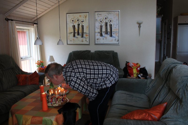 - Ich helfe Herrchen beim Auspusten der Geburtstagskerzen