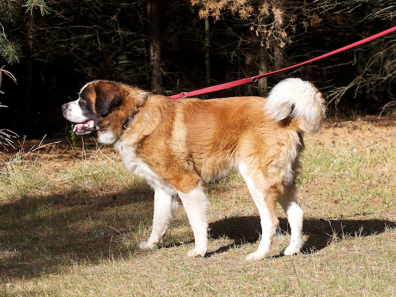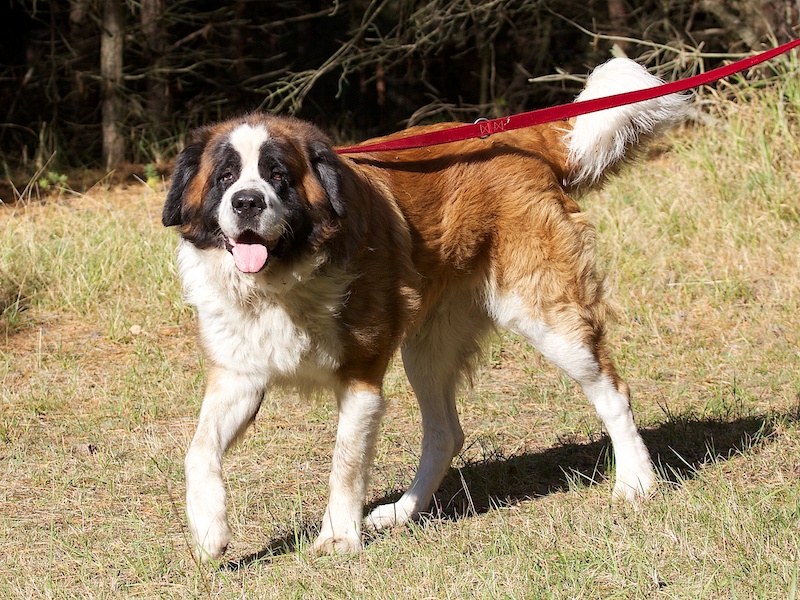Dieser Bernhardiner ist ein wachsamer Hund. Er nimmt seine Umgebung vorsichtig-ängstlich wahr und schlägt an, wenn er etwas nicht kennt.