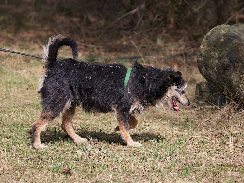 Bei uns lebte er zwar völlig problemlos in der Gruppe mit anderen Hunden zusammen; aber man merkt, dass er gern eine eigene Familie hätte, in der er der Mittelpunkt sein darf.