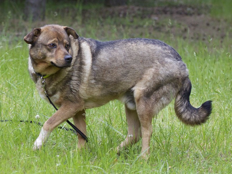 Er ist ein lieber und freundlicher Hund, der gern schmust.