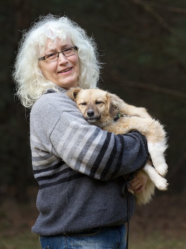 Aus den Armen unserer Ehrenamtlerin Annette hat Maree sich in die ihrer neuen Herrchen nach Berlin begeben.