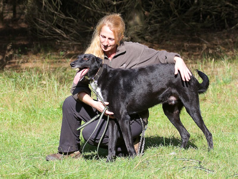 Unser schwarzer Windhund Addams lebt jetzt in Potsdam.