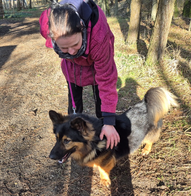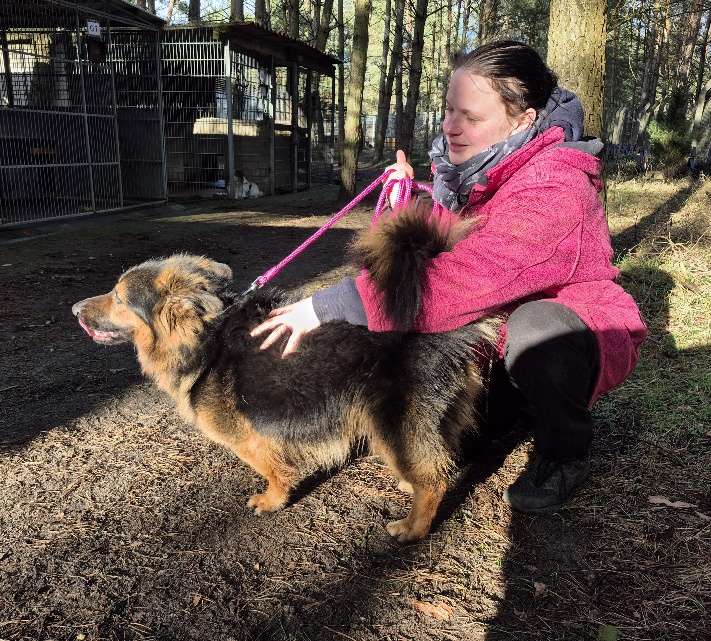 Nach und nach haben wir es geschafft, dass jetzt alle Mitarbeiter ihn führen können. Bei seinen Lieblingspflegern kann er sich inzwischen auch recht gut entspannen, schmust dann gern und läuft gut an der Leine.