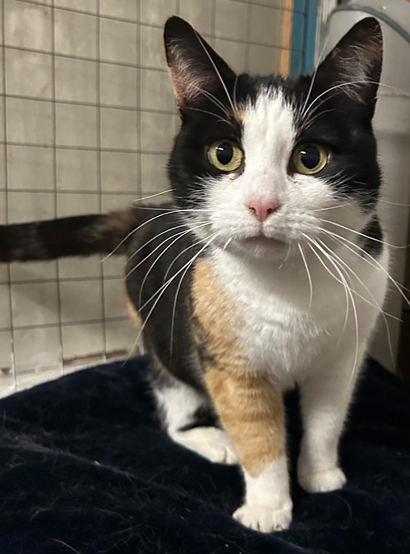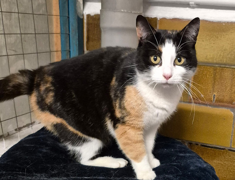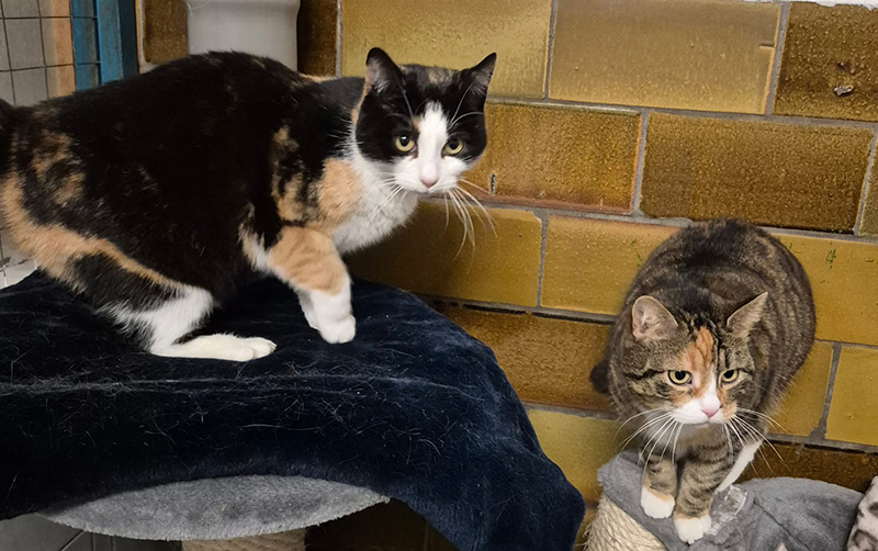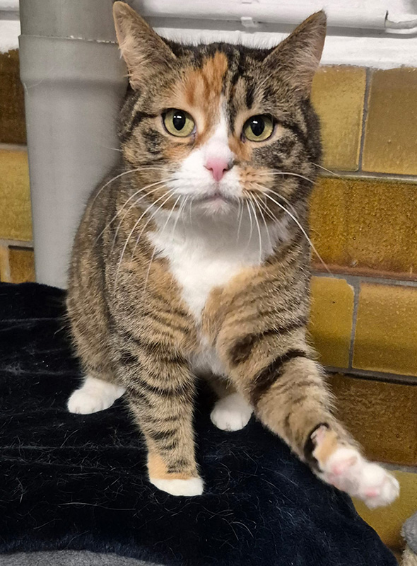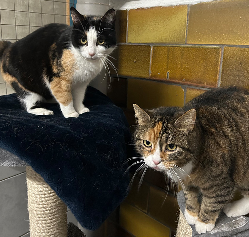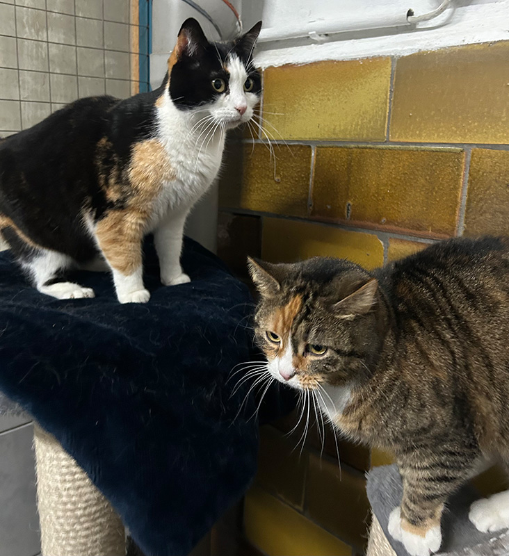 Sophie ist die dunklere, dreifarbige Katze. Sie wurde ca. 2022 geboren.