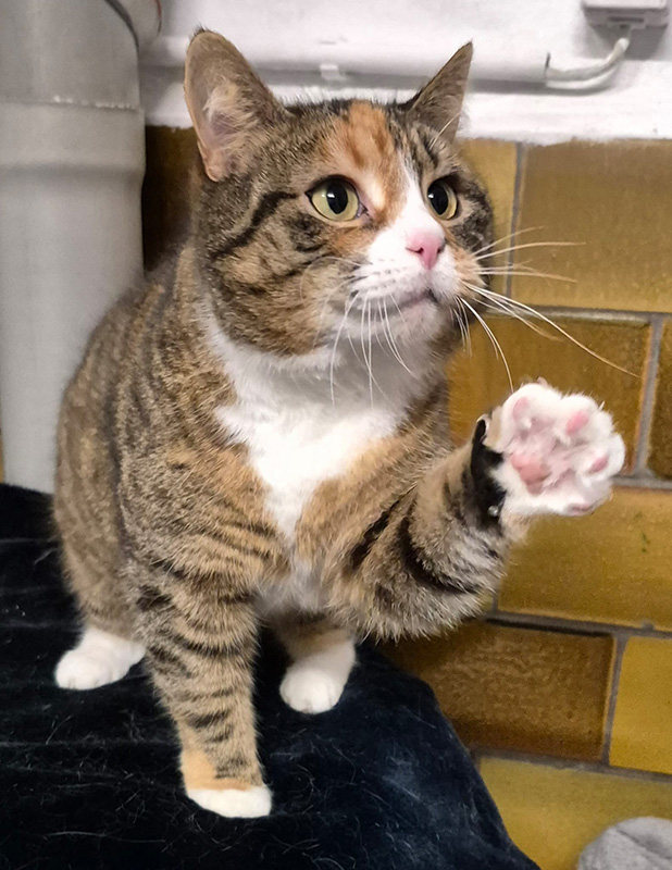 Elisabeth - sie ist die getigerte Katze - wurde ebenfalls ca. 2022 geboren.
