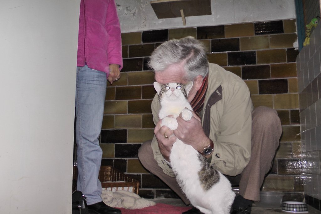 Flecki ist eine ältere Katze, die sich freuen kann, dass ein sehr tierliebes Ehepaar aus Berlin sie jetzt adoptierte. Unsere Tierpflegerin Gabi konnte sich noch verabschieden, dann wurde Flecki in die Transporttasche verladen und machte sich auf den Weg in die Hauptstadt.