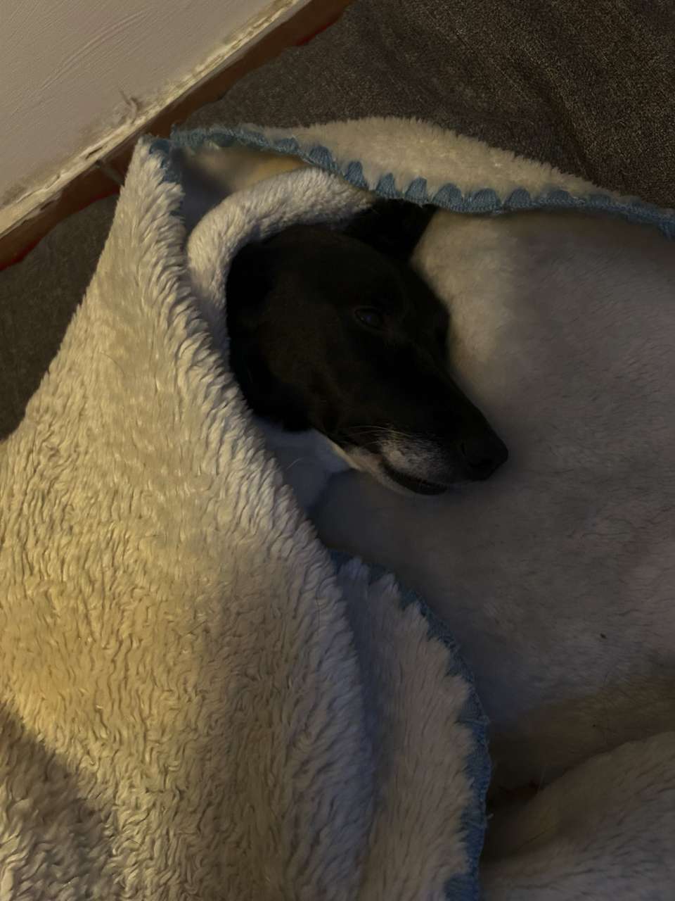 Wir haben sie nach Hause gebracht und haben sie in ihr Körbchen gelegt. Unser Checker der auch nicht der gesündeste ist, sollte seine Zeit bekommen um Abschied zu nehmen.