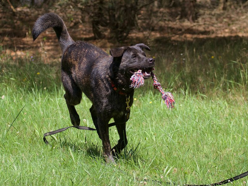 Er spielt unheimlich gern Ball, Stöckchen und mit seinen Menschen: Balgen, Raufen, Toben - es kann ihm nie zuviel werden. Dabei hat er viel Kraft.