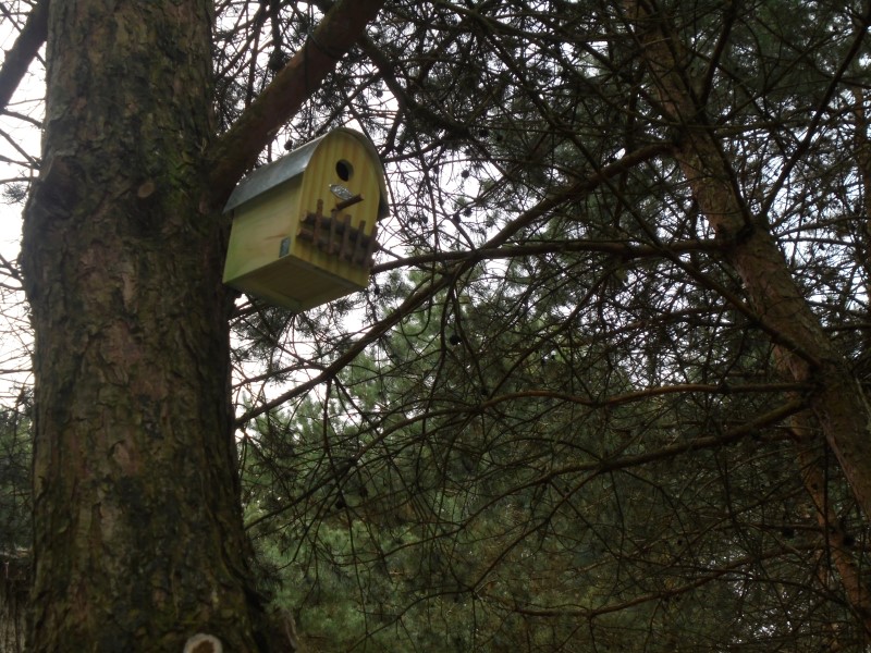 Auf unserem weitläufigen Gelände hängen schon etliche Vogelkästen.