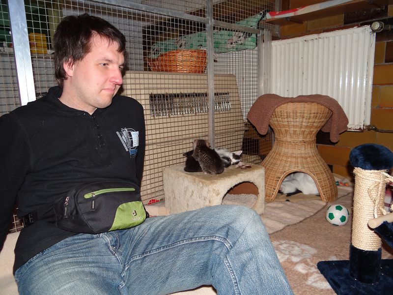 Auch der blinde junge Mann, der eigens aus Erkner angereist war um mitzuhelfen, betreute die Katzen.