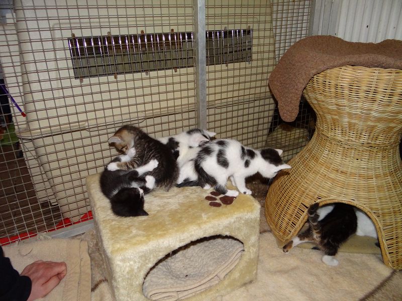 Nicht alle Mütter waren in der Lage, ihre Katzenkinder zu versorgen. So mussten unsere Pfleger mit Handaufzucht einspringen. Auch andere Katzenmütter "adoptierten" fremden Nachwuchs. So herrscht in manch einem Katzenzimmer ein unglaubliches Gewusel und buntes Durcheinander verschiedener Würfe.