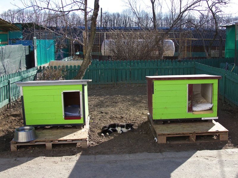 Überall auf dem Gelände der SMEURA stehen Hundehütten, die liebevoll mit Decken ausgelegt sind.