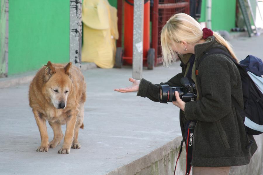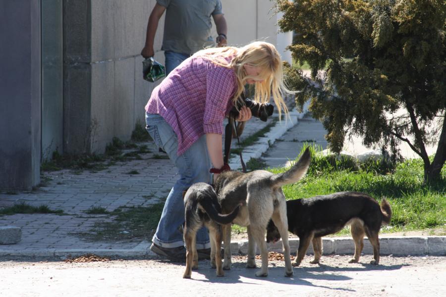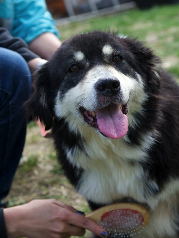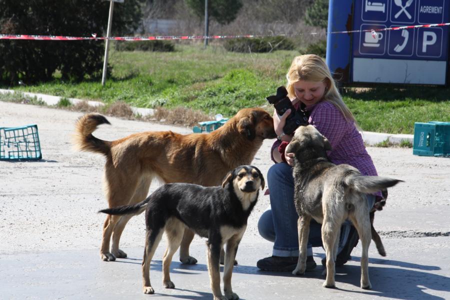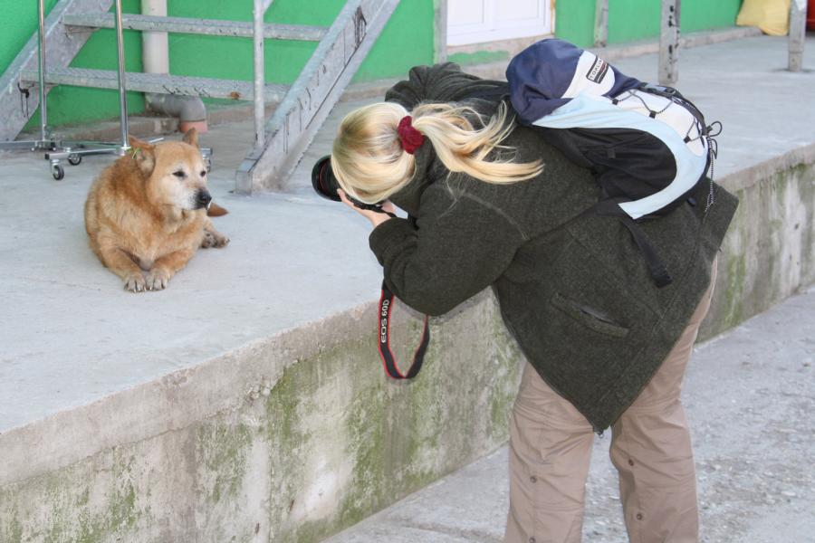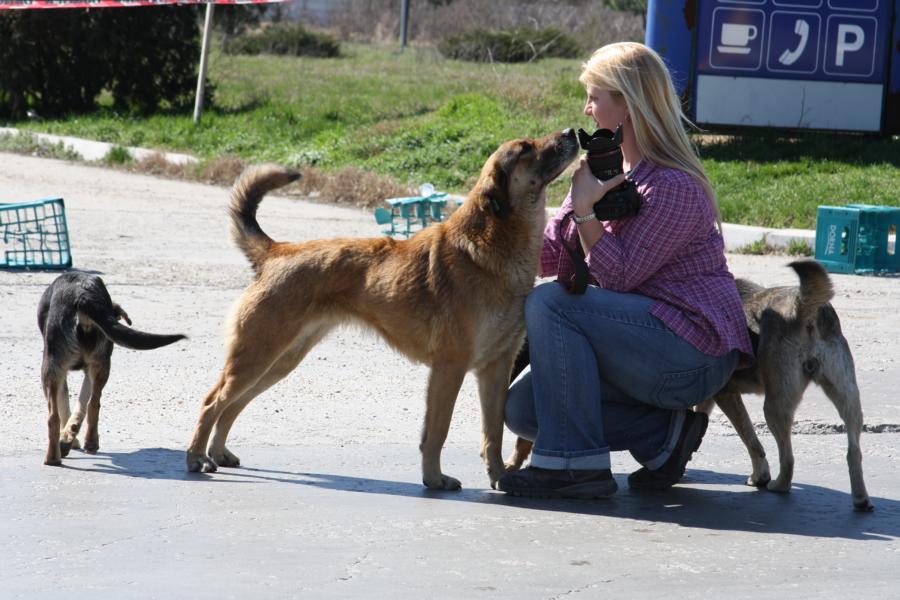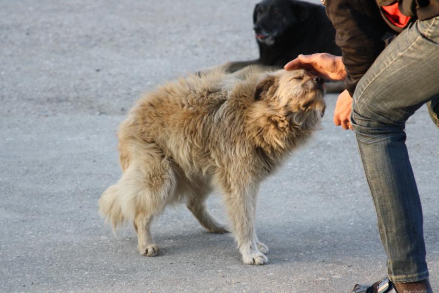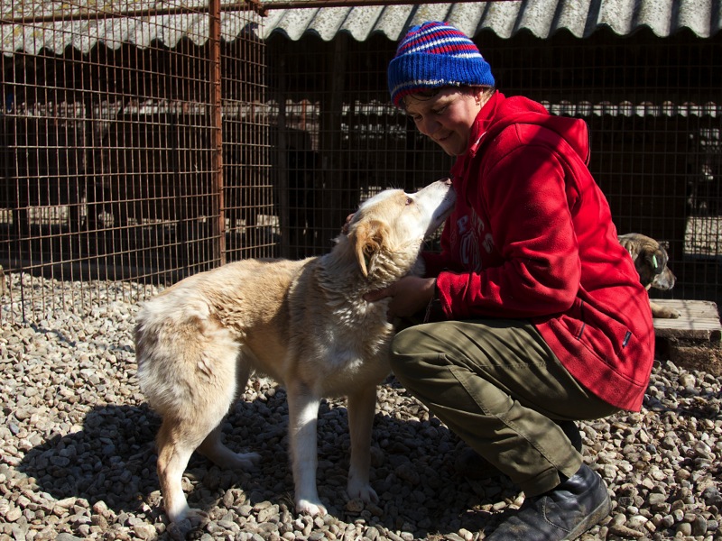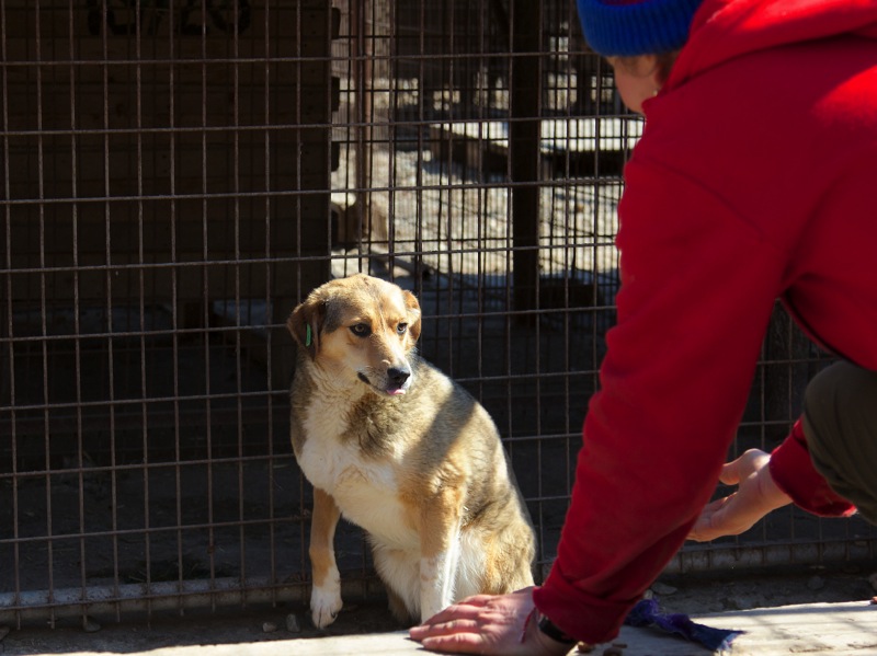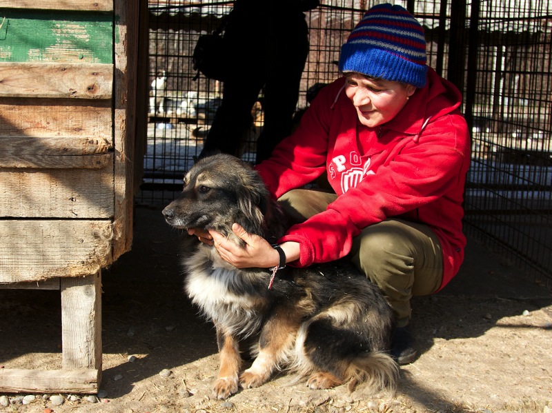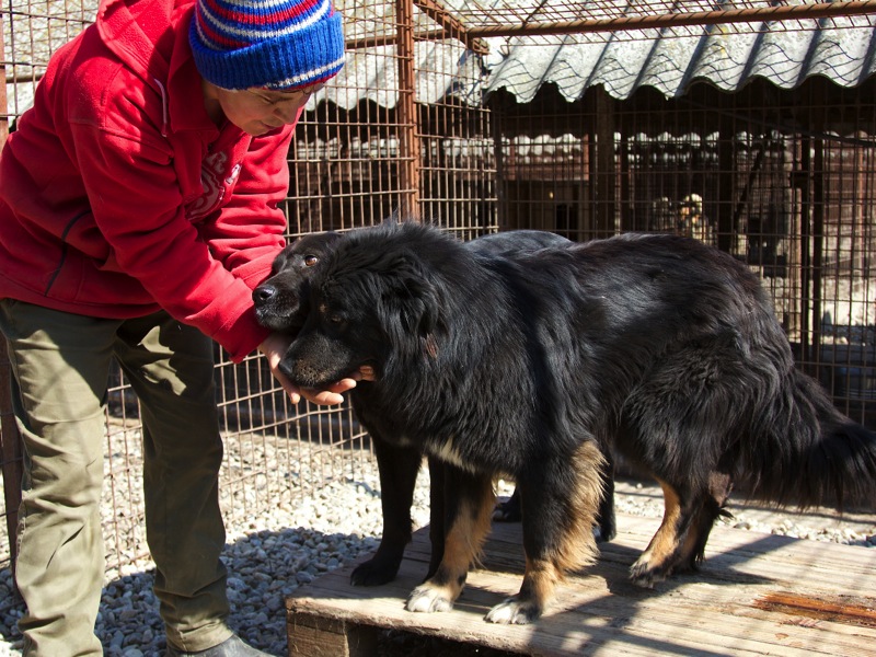 Die älteren Hunde, die sich frei bewegen dürfen, genießen den Kontakt mit den Mitarbeitern.
