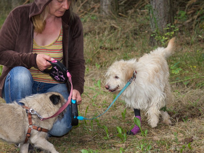 Zum Glück brauchte bei Ferris nur ein Bein operiert zu werden. Ähnlich wie bei Felipa kam es nach ein paar Wochen zu Problemen, so dass wir nachoperieren lassen mussten. Auch das ist nun überstanden. Bald wird Ferris "wie neu" sein und als ein ganz normaler Hund durchs Leben laufen können.