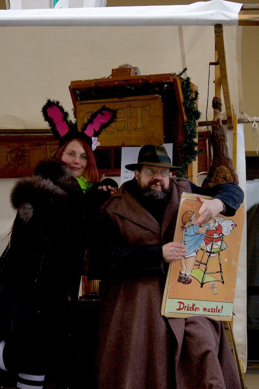 Der Höhepunkt war für uns zweifellos "Heinrich Zille". Er unterhielt die Besucher des Festes - und auch unsere Ehrenamtler am Stand - in unvergleichlicher Weise. Der Schauspieler im Kostüm des Heinrich Zille steht dem "Pinselheinrich" in puncto Originalität nicht nach.