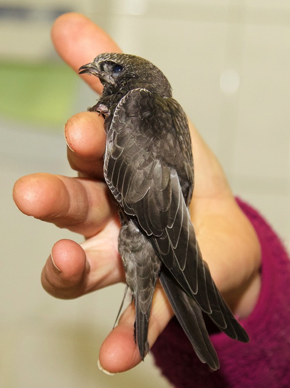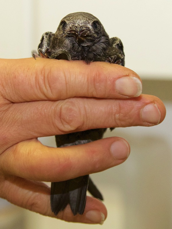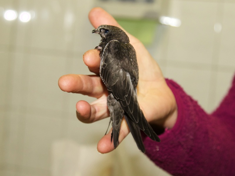Wir hatten erst Sorge, ob wir ihn überhaupt durchbekommen würden, denn aus dem Nest gefallene Mauersegler sind in der Fütterung sehr schwierig.